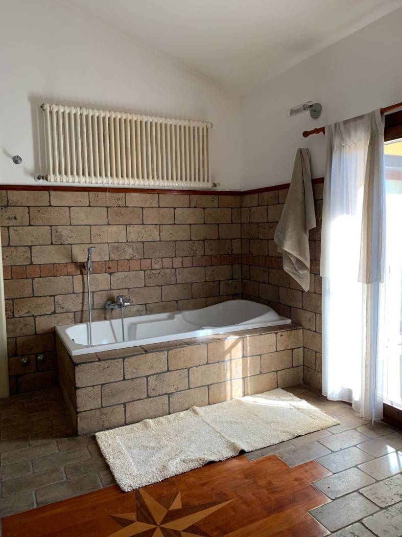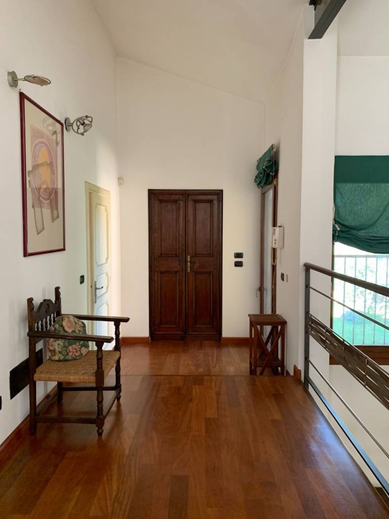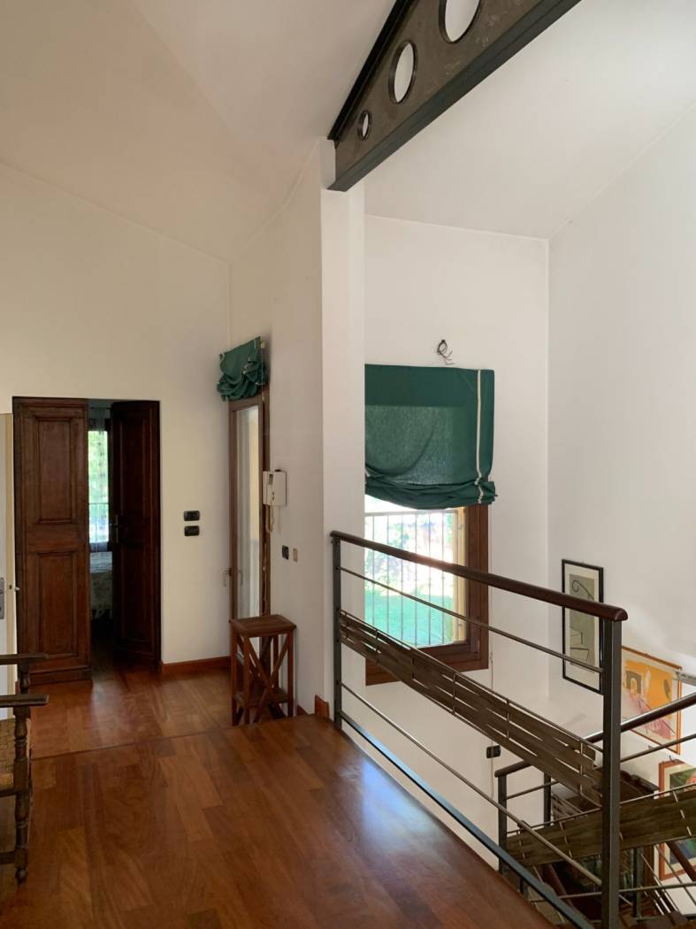 ADIACENZE CORSO ERCOLE I D'ESTE, in posizione unica con vista sulle antiche Mura Estensi prestigiosa villa indipendente libera su 4 lati, recentemente e totalmente ristrutturata, disposta su due livelli e così composta: ingresso su ampia e luminosa zona living di mq 70 c.a dotata di maxi vetrate con affaccio sullo scoperto e camino in muratura, ampia cucina abitabile con zona dispensa e accesso a cortile interno privato ideale per pranzi e cene all'aperto, tre camere da letto matrimoniali di cui una con bagno privato finestrato e cabina armadio interna, ampia sala da bagno con vasca e doccia, bagno di servizio, seconda cabina armadio o studio, zona soppalco in cristallo, lavanderia e garage comunicante con l'abitazione. Completa la proprietà uno scoperto verde piantumato di mq 400 c.a. Ottime finiture (pavimenti in marmo, parquet, scala di design a giorno in acciaio legno e marmo, porte antiche, clima, caldaia a condensazione, zanzariere, porta blindata, allarme, etc..) Libera in 6-8 mesi. Si valuta permuta in città. A.P.E. CL. E Ep. 248,33 kwh/m2/anno Euro 850.000,00 rif. Q886